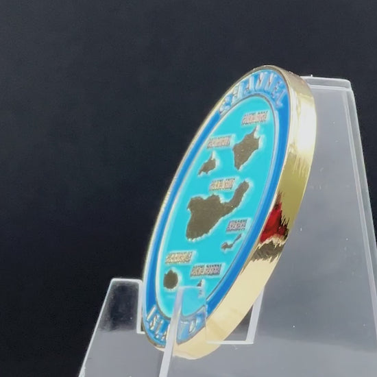 The coin features an aerial view of each of the Northern Channel Islands (San Miguel, Santa Rosa, Santa Cruz, Anacapa, Santa Barbara, and San Nicholas). Technically Catalina and San Clemente area part of the island chain, however if you are from Southern California you know what's up!