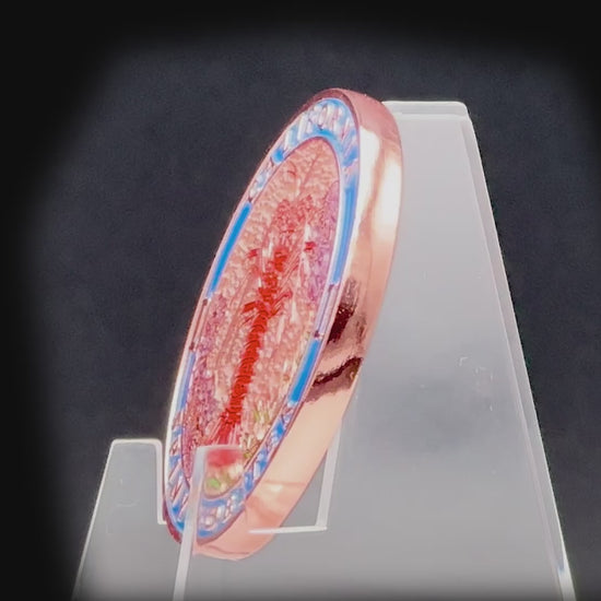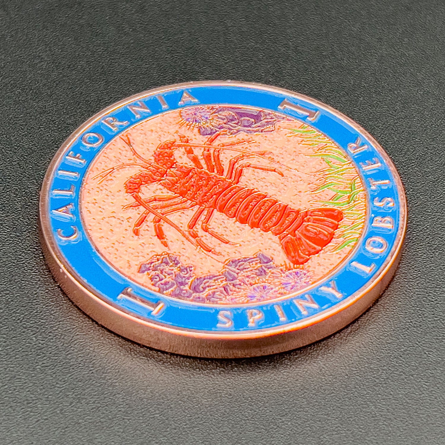 Dimensions: 1.75" Diameter, 4mm thick, plated, enamel coin.